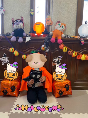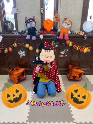 少し早いハロウィンパーティを開催致しました。 仮装をしたり手作りの飾りを使って写真を撮ったり 皆で楽しい時間を過ごしました♪ 「トリックオアトリート!」を合言葉でお菓子を貰って ニコニコ(⌒∇⌒) 沢山の笑顔が見れた1日でした